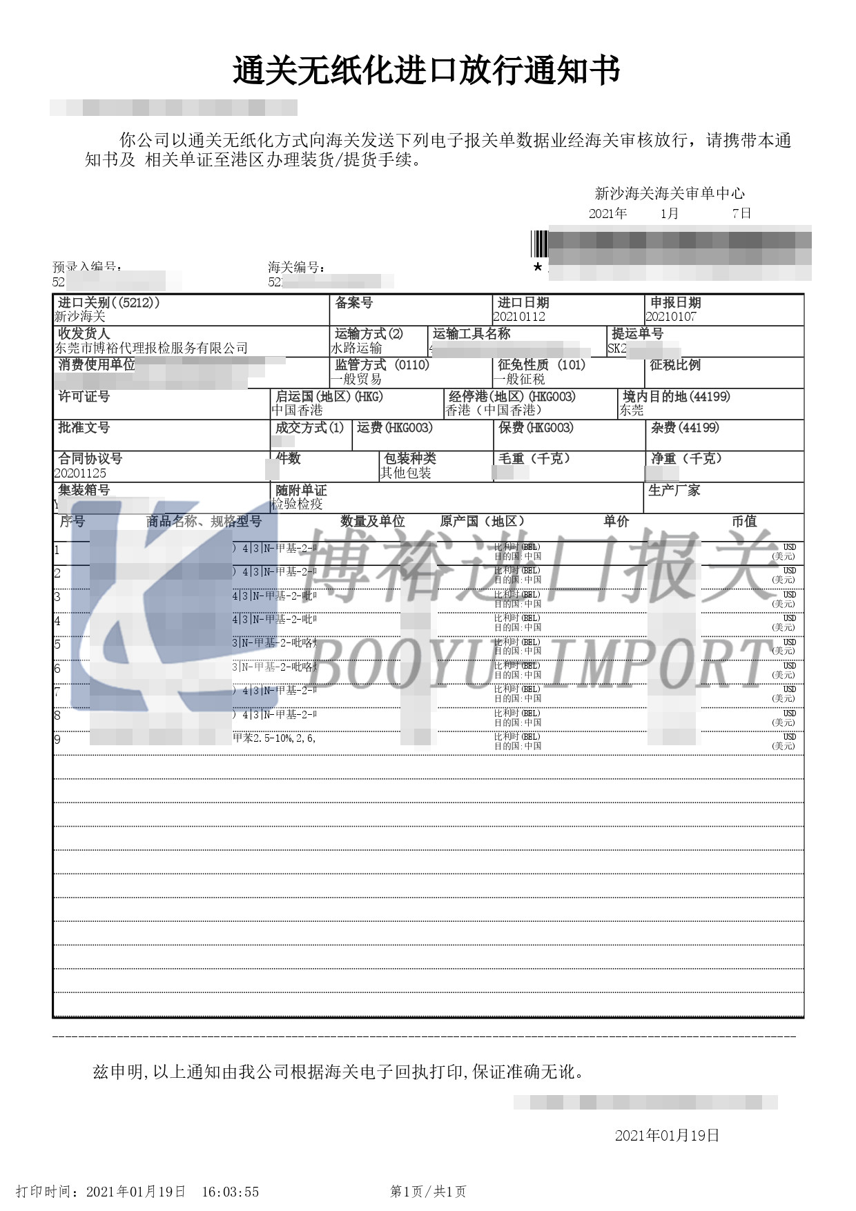 8、產品信息:品名、數量、包裝、重量及體積等;